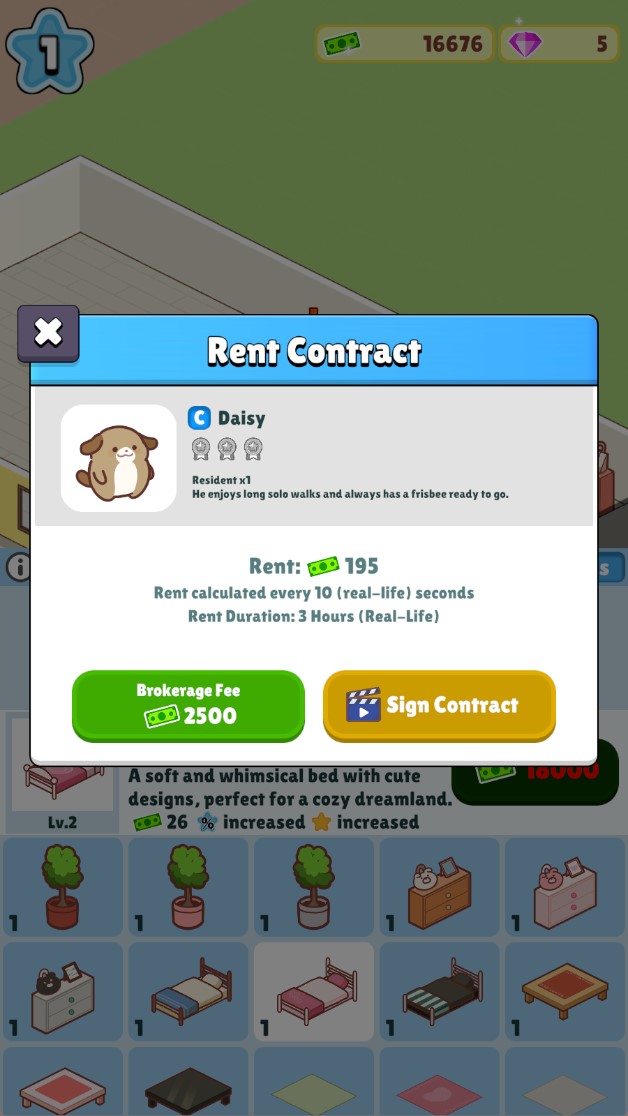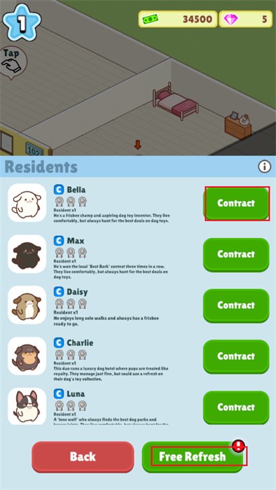 《狗狗公寓》游戏里玩家需要管理属于自己的公寓,通过翻新里面的房屋和升级公寓等级,去吸引更多的狗狗居民进行居住,在游戏里玩家会遇到各种各样的小狗,每个角色都有自己的个性和居住需求,需要通过对话了解他们的需求,为他们提供合适的居住环境,让狗狗入住后可以赚取租金,同时完成任务和挑战关卡的方法也能获得金币,之后就可以购买大量的家具和装饰品,去增加公寓的吸引力,吸引更多的狗狗居民入住。