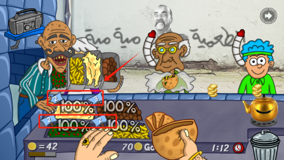 3、 点击人物后将各种食材点击放入到相应的格子中