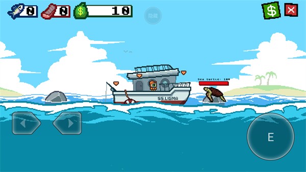 在这里点E投喂给乌龟我们刚刚挂好鱼鳞的鱼