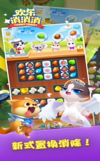 萌宠换装,可爱萌宠,华丽服饰等你来收集!《欢乐消消消》是一款萌宠换装消除的游戏。在欢乐消消消游戏中,可爱简约的游戏画风,可爱的萌宠们等你来消除。丰富的游戏关卡,简单的消除玩法,通过消除完成游戏关卡任务就能获得红包奖励哦!还能分享给你的好友,叫上你的好友与你一起来消除获得游戏红包吧。