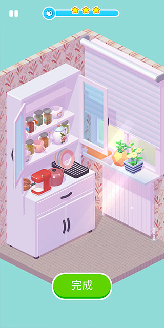 1、房子中的各种家具和设施都是可以改变的,为了让自己的设计更好完成三消挑战