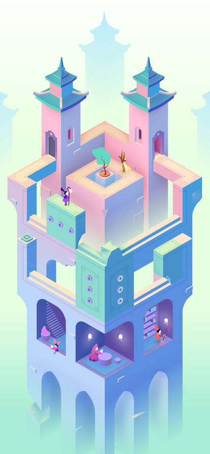 纪念碑谷3延续了纪念碑谷这一系列极简主义艺术风格和地图设计,同时达到了新的高度。受世界各地建筑风格、实验艺术家风格和个人经验的启发,将各种元素浓缩成独特的视觉错觉形象。开始游戏时,你会立刻沉浸在它所展示的视觉世界中。