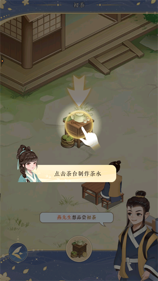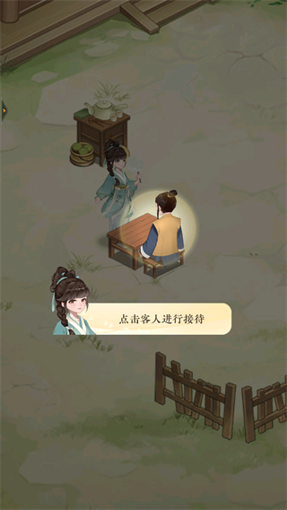 1、当前要做的就是一家店的店主,客人来了之后点击客人进行接待,然后点击茶台制作茶水