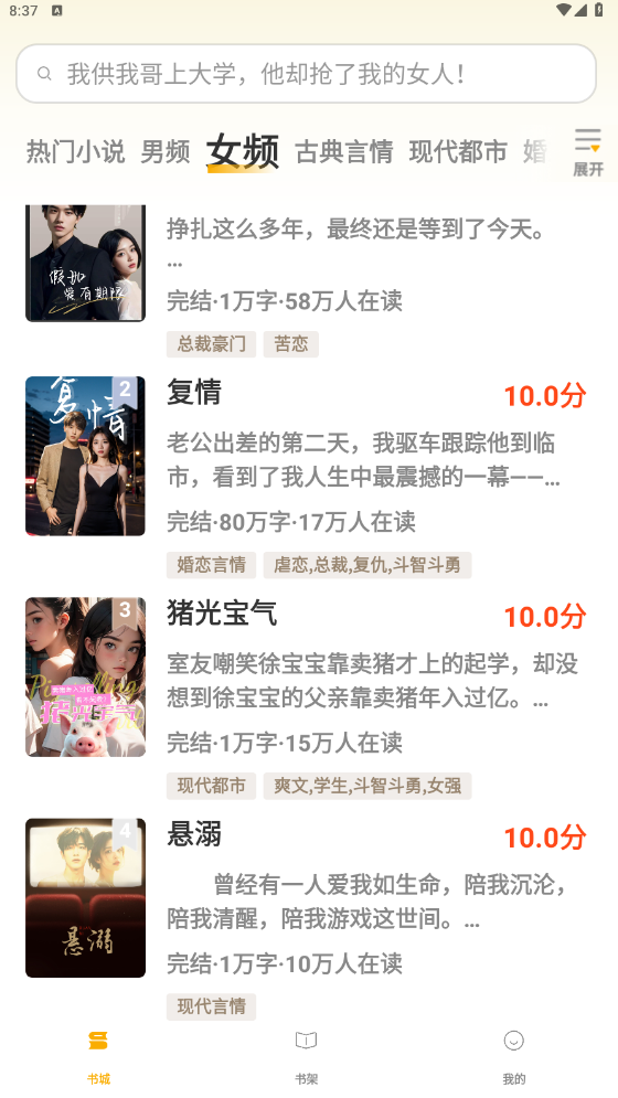3、家里推荐的书,都是时下流行的,无限阅读,免费打造沉浸式追书